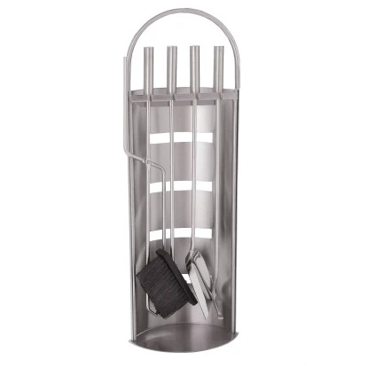 Das Kaminbesteck besteht aus vier nützlichen Teilen und einem stabilen Ständer. Es ist edelstahlfärbig mit Griffen aus Edelstahl und demnach sehr stabil. Im Lieferumfang befinden sich neben dem Ständer ein Besen, eine Schaufel, eine Zange und ein Schürhaken.