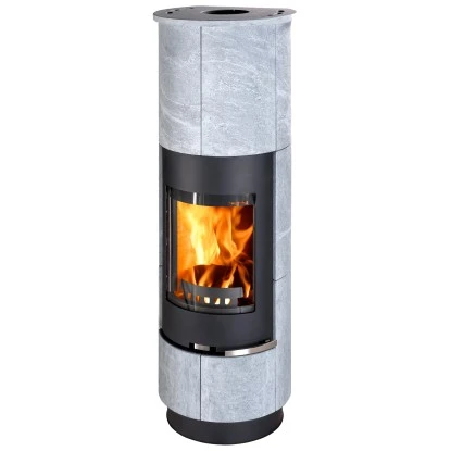 Der Thorma Kaminofen Cadiz ist mit handgefertigten Kacheln und einer massiven Speicherkeramik ausgestattet. Der Brennraum besteht aus formgepresster Vermiculite und Gussmulde. Stahltür verfügt über eine Panoramasichtscheibe und eine 2-Fach Verriegelung. Der Kamin kann jeweils oberhalb oder im hinteren Bereich angeschlossen werden. So passt sich der Kamin optimal Ihrem Wohnraum an. Er ist für Räume von bis zu 204m³ geeignet. Die Wärmeleistung beträgt 7,5 kW. Brennstoffe : Scheitholz und Holzbrikett.